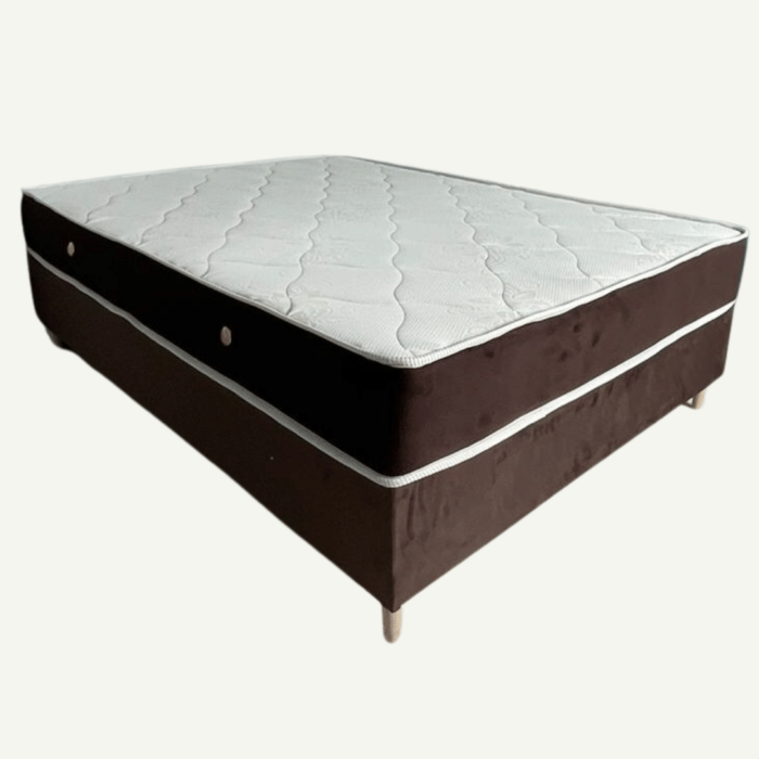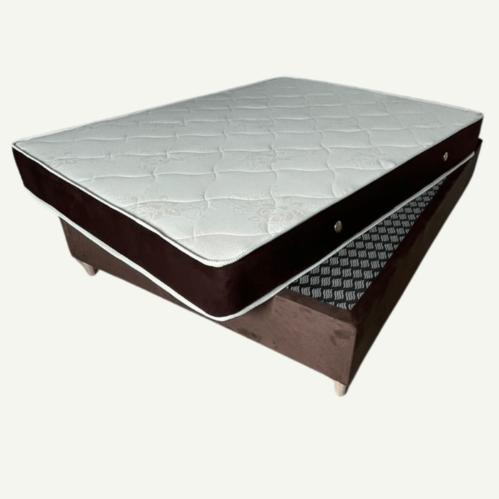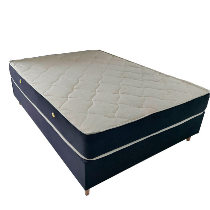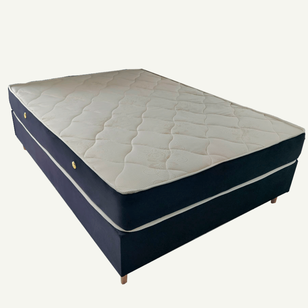 Colchão de molas ensacdas com 24cm de alturaSommier (base) revestido em sued e  com 30cm de alturaSommier Mono para colchão de casalSommier bi-partido para Queenpezinho de 12cm